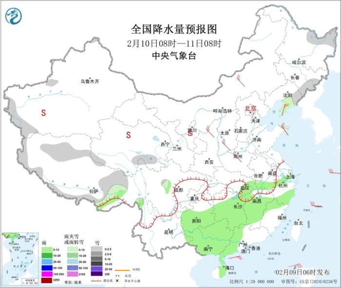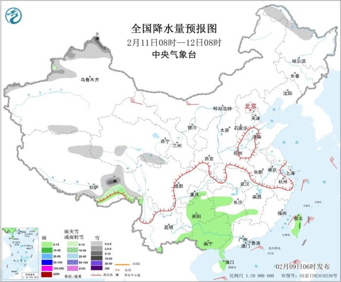 圖2 全國降水量預報圖(2月9日08時-10日08時)圖片來源:中央氣象臺網(wǎng)站