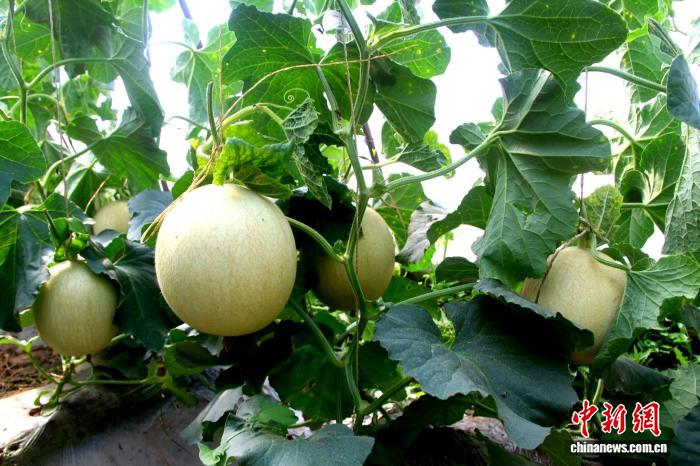 中新網(wǎng)蘭州2月9日電 (馬愛(ài)彬)原本緊貼地面生長(zhǎng)的臺(tái)灣“玉菇”甜瓜,在甘肅省武威市民勤縣的溫室大棚里換了“生長(zhǎng)姿態(tài)”,經(jīng)悉心牽引上架成為吊瓜。瓜藤沿繩攀援,果實(shí)懸垂半空,在沙漠邊緣的暖棚中積淀著飽滿甜意,也為當(dāng)?shù)剜l(xiāng)親的新春日子攢下實(shí)實(shí)在在的增收底氣。