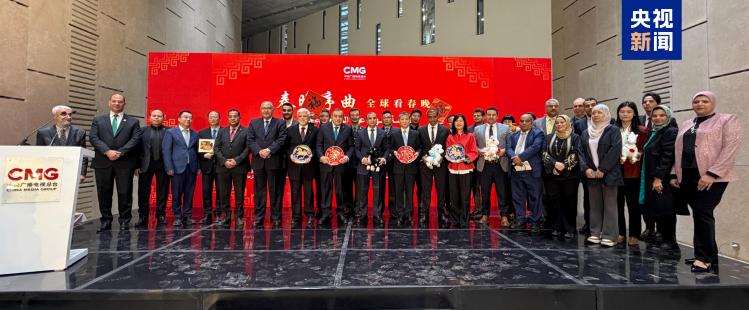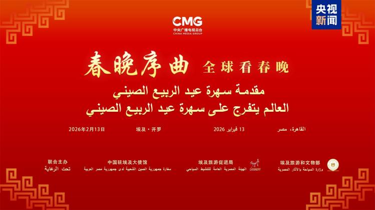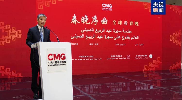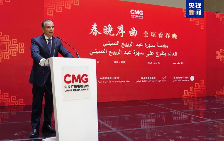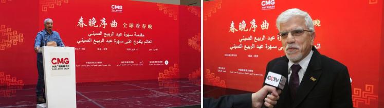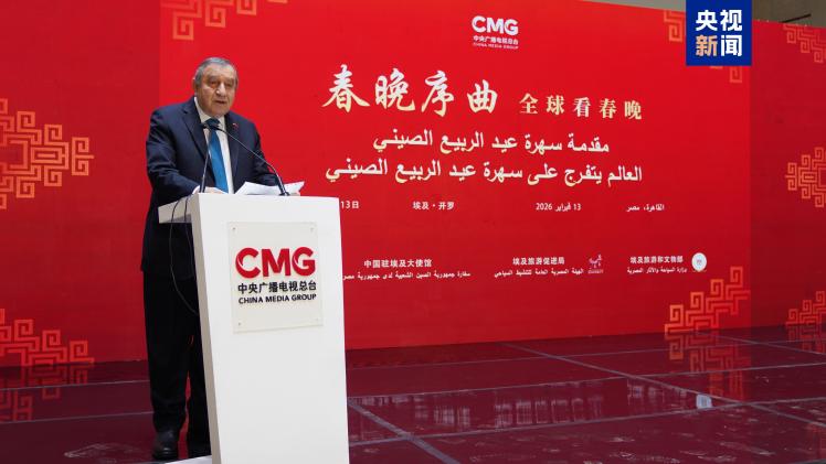 當(dāng)?shù)貢r間2月13日,“春晚序曲 全球看春晚”埃及專場活動在開羅舉行。本次活動由中國中央廣播電視總臺與中國駐埃及大使館、埃及旅游和文物部、埃及旅游促進(jìn)局共同主辦。中宣部副部長、中央廣播電視總臺臺長慎海雄作視頻致辭。中國駐埃及大使兼駐阿盟全權(quán)代表廖力強(qiáng),埃及政府代表、埃及外交部亞洲事務(wù)部助哈姆扎,埃及前總理沙拉夫出席活動并致辭。埃及考古學(xué)家、前文物部長哈瓦斯,埃及旅游促進(jìn)局主席代拉提芙,埃及外交事務(wù)委員會執(zhí)行主任伊扎特,巴德爾大學(xué)副校長巴斯歐尼,阿盟非洲事務(wù)司司長布斯坦吉,阿盟理事會秘書處主任法赫米等中埃兩國政界、學(xué)術(shù)界、媒體界代表200余名嘉賓參加活動。