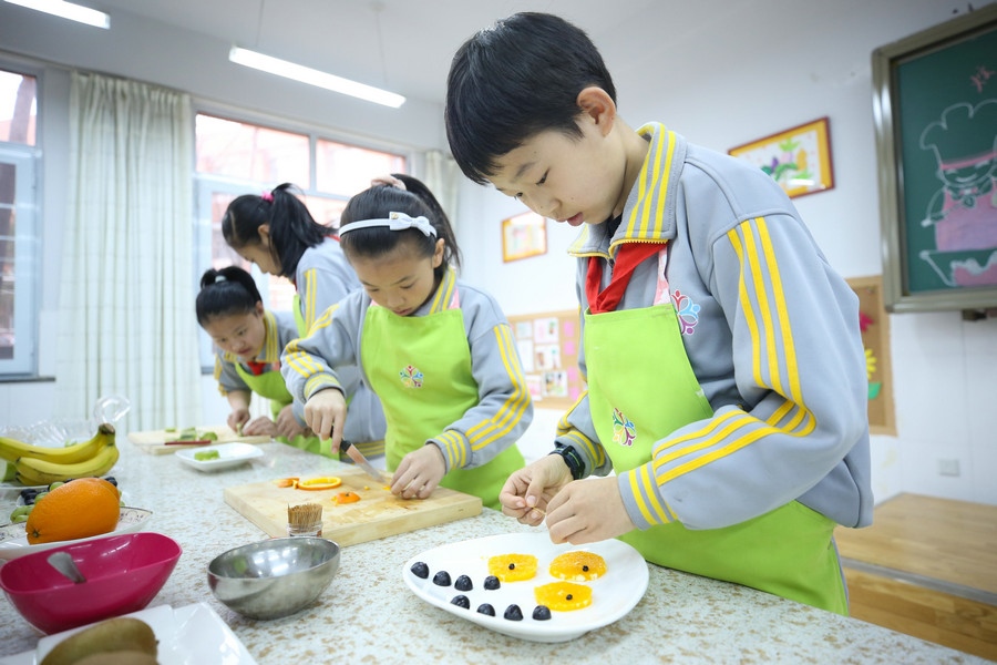 “今日課程學(xué)習(xí)的是水果拼盤和可樂雞翅?!备S勺鏟翻動,添上各種調(diào)料,一個個身著圍裙的學(xué)生們正在老師的指導(dǎo)下忙的不亦樂乎。從擇菜、烹飪到清洗廚具,一個個學(xué)生儼然已經(jīng)成為“小廚師”。從三年級開始,學(xué)校還開展了陶藝、木工、科技制作等活動,找準(zhǔn)學(xué)生的興趣點,學(xué)校有趣的勞動技能活動吸引了學(xué)生的眼球。