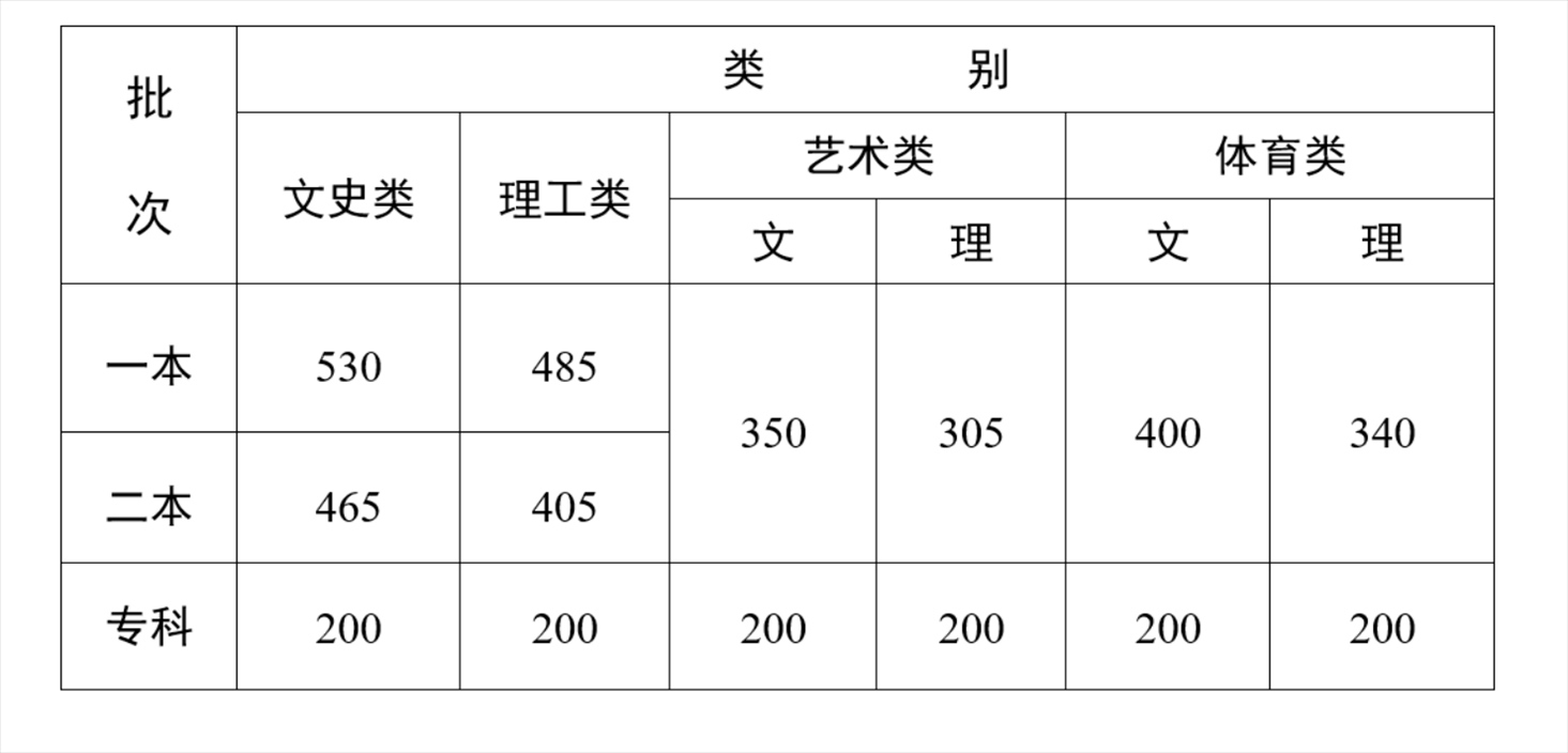 云南省2023年普通高校招生錄取最低控制分數(shù)線