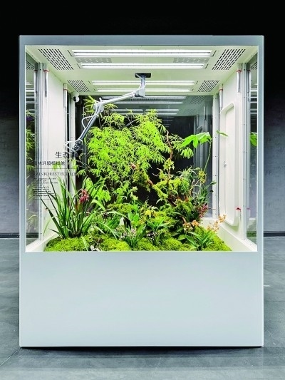 展廳一側(cè),三個立方體環(huán)境模擬艙并排放置,分別在近7立方米的空間內(nèi)模擬了雨林、海島、沙漠三種生態(tài)環(huán)境,引來許多觀眾圍觀?!霸诟邩橇至⒌亩际?,很多人都向往擁有一方屬于自己的自然天地。為人們在室內(nèi)打造一片‘原始森林’便成了我們的使命?!逼放苿?chuàng)始人李軍介紹,設(shè)計(jì)過程中,團(tuán)隊(duì)遇到的一大的難點(diǎn)就是在保證室內(nèi)環(huán)境舒適度的同時,讓各類植物健康生長?!巴ㄟ^設(shè)計(jì)師的努力,我們首次將人造太陽光源、溫濕度控制、空氣流通、智能微噴等系統(tǒng)整合于室內(nèi)種植模擬環(huán)境中,實(shí)現(xiàn)了室內(nèi)種植智能化、自動化、現(xiàn)代化?!崩钴姳硎?,做設(shè)計(jì)亦要遵循自然法則,“人與自然和諧共生”是團(tuán)隊(duì)始終不變的設(shè)計(jì)宗旨。