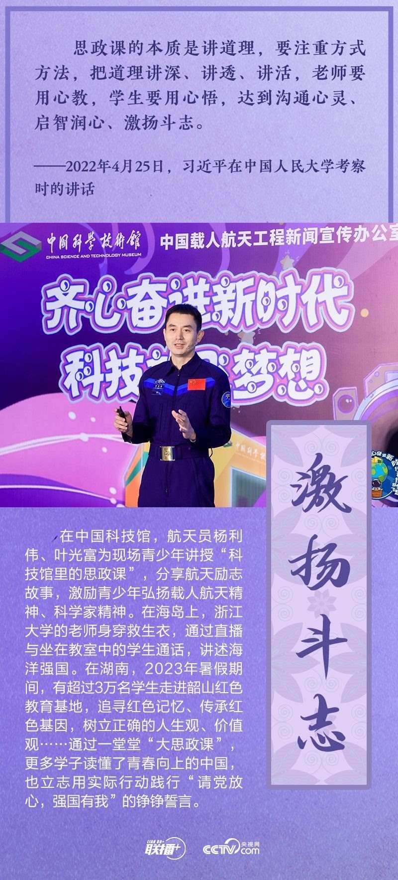 如何辦好新時(shí)代思政課?總書記有明確部署,全國(guó)各地也進(jìn)行了頗多有益探索。在2023年“把青春華章寫在祖國(guó)大地上”網(wǎng)絡(luò)主題宣傳和互動(dòng)引導(dǎo)活動(dòng)舉辦之際,央視網(wǎng)《聯(lián)播+》與您一同走進(jìn)豐富多彩的思政課堂。