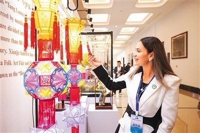 外國(guó)友人在參觀和合文化展陳。 潘侃俊攝