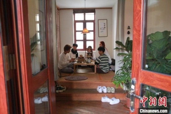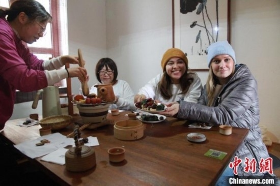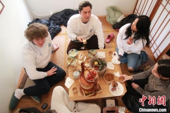 1月8日,來自美國加利福尼亞州州立大學長灘分校的十余名學生來到山東青島,體驗圍爐煮茶感受中國傳統(tǒng)文化。