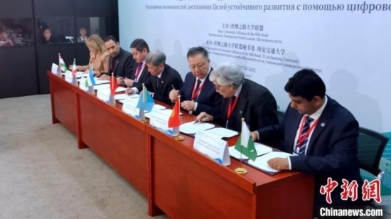 活動(dòng)現(xiàn)場(chǎng),西安交通大學(xué)、哈薩克斯坦國立大學(xué)、伊朗科技大學(xué)、塔什干信息技術(shù)大學(xué)、吉爾吉斯國際大學(xué)、巴基斯坦國立科技大學(xué)、塔吉克斯坦國立大學(xué)共同簽署“絲綢之路大學(xué)聯(lián)盟”內(nèi)上海合作組織成員國《高等教育合作協(xié)議》。在該合作協(xié)議框架下,各方達(dá)成首個(gè)學(xué)分互認(rèn)項(xiàng)目的共識(shí),即共同建設(shè)絲綢之路大學(xué)聯(lián)盟“可持續(xù)發(fā)展目標(biāo)實(shí)現(xiàn)路徑在線課程”。