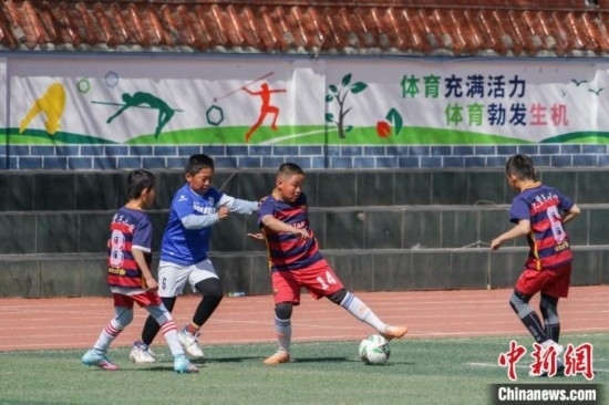 圖為在西寧市大堡子小學(xué),學(xué)生進(jìn)行日常足球訓(xùn)練。馬銘言 攝
