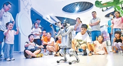 廣西壯族自治區(qū)柳州科技館內(nèi),許多家長帶著孩子前來參觀,探索科學(xué)奧秘。黎寒池攝(影像中國)