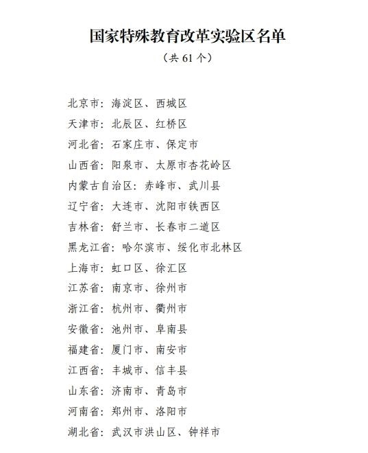 記者2月10日從教育部獲悉,經(jīng)各地自主申報、省級推薦、網(wǎng)絡(luò)公示等環(huán)節(jié),認(rèn)定北京市海淀區(qū)等61個國家特殊教育改革實驗區(qū)。