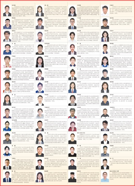 經(jīng)過(guò)嚴(yán)格選拔和評(píng)審,全國(guó)約2萬(wàn)名中職學(xué)生榮獲2023—2024學(xué)年度中等職業(yè)教育國(guó)家獎(jiǎng)學(xué)金。以下100名學(xué)生是中等職業(yè)教育國(guó)家獎(jiǎng)學(xué)金獲獎(jiǎng)學(xué)生中的優(yōu)秀代表。希望全國(guó)中職學(xué)生以他們?yōu)榘駱?,愿學(xué)技能、學(xué)好技能,努力將自己鍛造成為新時(shí)代的高素質(zhì)技術(shù)技能人才、能工巧匠、大國(guó)工匠,在推進(jìn)強(qiáng)國(guó)建設(shè)、民族復(fù)興偉業(yè)中展現(xiàn)青春作為、彰顯青春風(fēng)采、貢獻(xiàn)青春力量,奮力書(shū)寫(xiě)為中國(guó)式現(xiàn)代化挺膺擔(dān)當(dāng)?shù)那啻浩隆?/p>