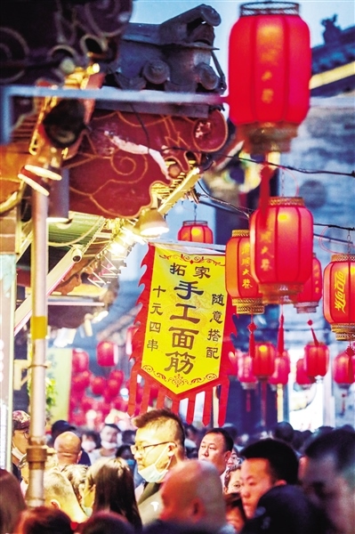 城市的夜色是風景,是心情,是生活,也是商機。夜幕之下,圍繞著大召的街市流光溢彩、人頭攢動,中山路上更是霓虹璀璨、人聲鼎沸,惱包村、萬達花樣年華步行街、中海銀河天街、809美食街、附中東巷……每一個曾經深藏在人們心中的夜市繁華街區(qū)又恢復了往日的煙火氣息,讓這座城市增添了更多的活力。