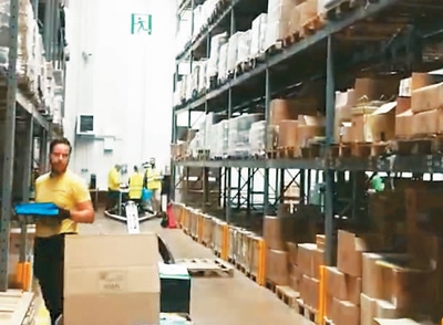 馮亞斌所在的意大利易賽法斯特國際電商物流有限公司員工在倉庫擺放貨物。