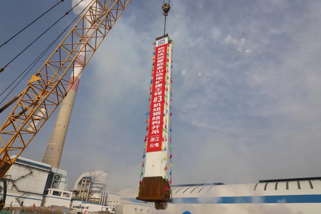 3號機組鍋爐首根鋼結構吊裝就位