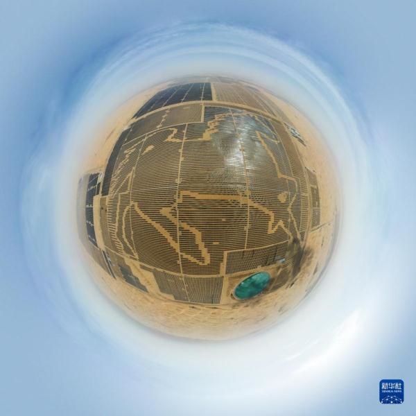 一匹占地130多萬平方米的沙漠“駿馬”橫臥在內(nèi)蒙古自治區(qū)庫布其沙漠之中,這是位于達拉特光伏發(fā)電應用領跑基地中、由近20萬塊光伏板組成的“駿馬電站”。該電站采用“林光互補”模式,板上發(fā)電、板下種植,在開發(fā)利用庫布其沙漠豐富太陽能資源的同時,推動沙漠生態(tài)治理。