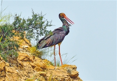 黑鸛在治理后的白獨貴灣休憩。焦長青 攝