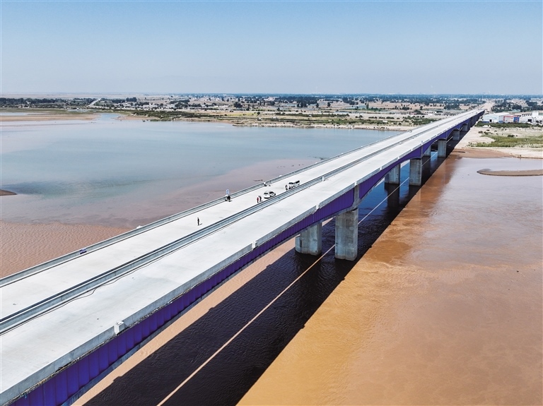 9月28日,包茂高速公路昭君黃河特大橋?qū)崿F(xiàn)主體完工。昭君黃河特大橋是包茂高速包頭至東勝改擴建工程包頭西連接線的控制性工程,主橋為國內(nèi)在建單聯(lián)最長的梁式橋,采用雙向4車道高速公路標準建設(shè),全長4300米。該橋建成通車后,將極大地縮短包鄂兩地的行車時間,提升路網(wǎng)通行能力。(本報記者 王曉博 攝)