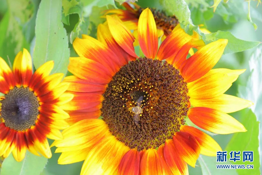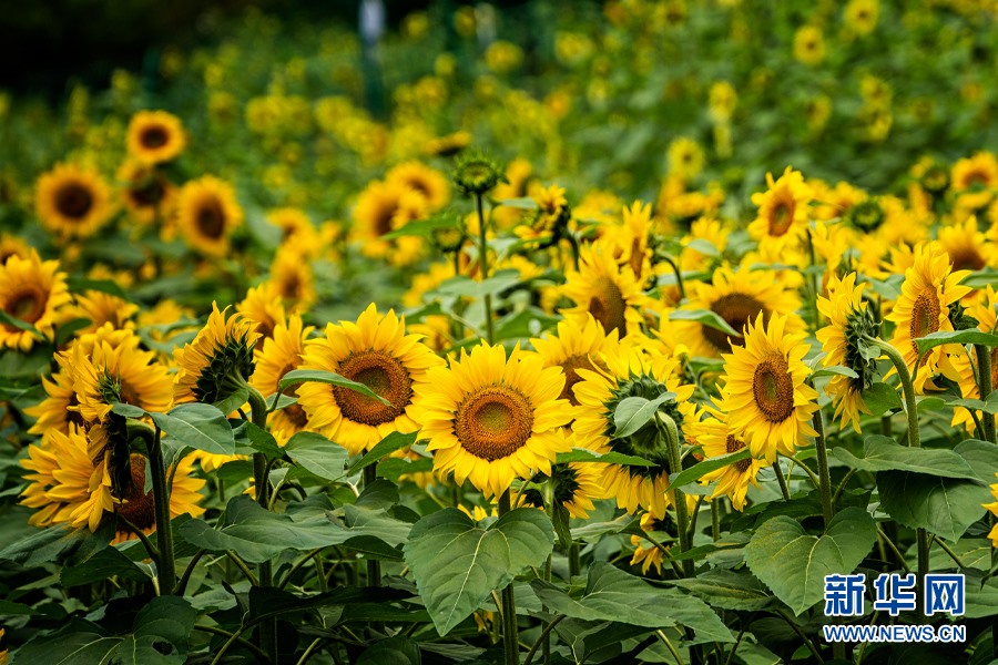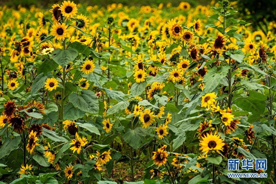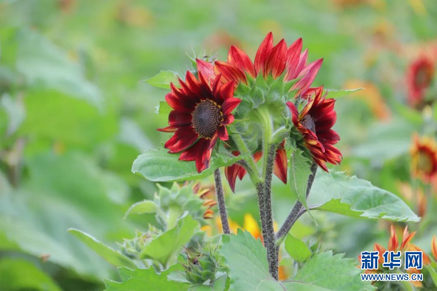 溫泉街道彩色向日葵(7月29日攝)。新華網(wǎng)發(fā)(安寧市溫泉街道供圖)