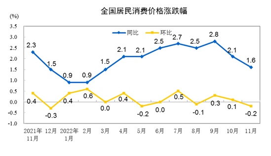 國家統(tǒng)計局:11月居民消費價格同比上漲1.6%