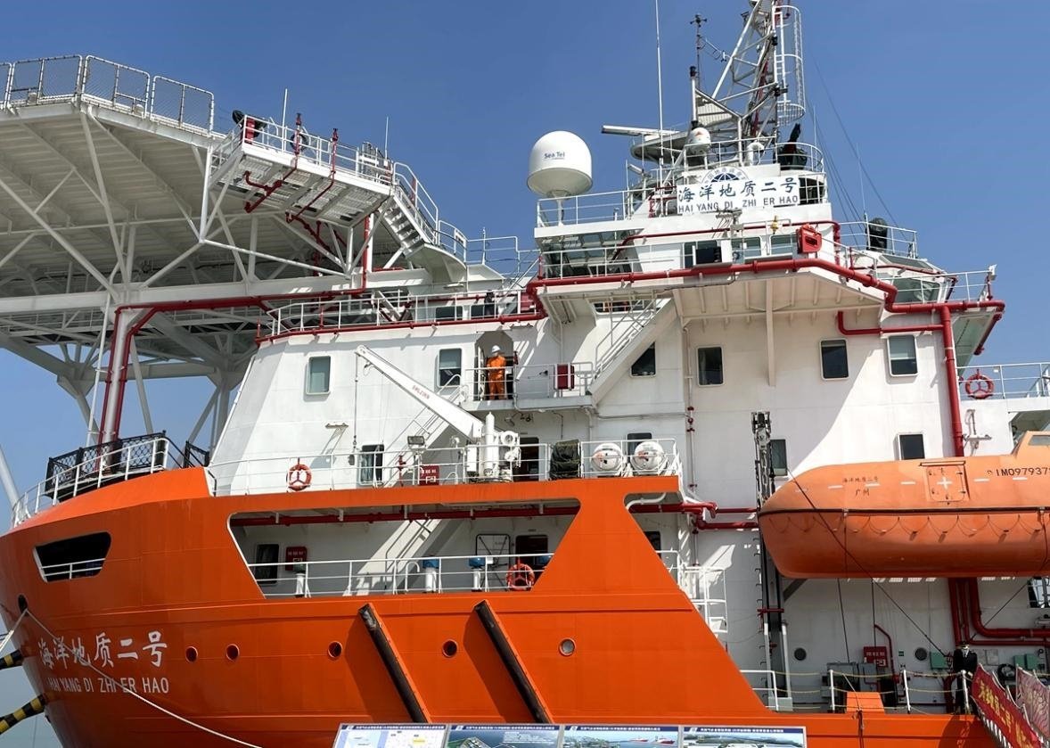 ??吭谥袊?guó)地質(zhì)調(diào)查局廣州海洋地質(zhì)調(diào)查局科考碼頭的“海洋地質(zhì)二號(hào)”科考船。人民網(wǎng) 李佳穎攝