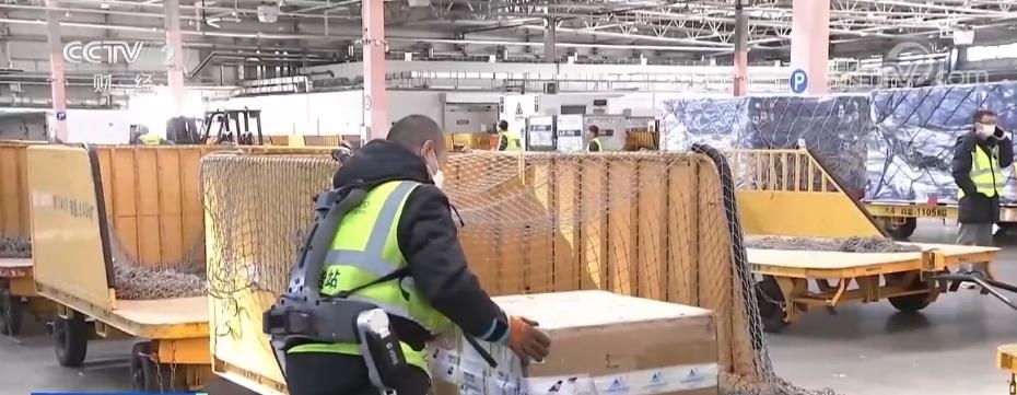 春節(jié)前后貨站的來貨量大增,貨物品種多樣,包裝規(guī)格也不盡相同,很多都需要人工處理。在大興機(jī)場的國內(nèi)貨運(yùn)站里記者看到,負(fù)責(zé)搬運(yùn)的工作人員身穿外骨骼機(jī)器人,將很大的貨運(yùn)箱輕松搬起。工作人員相春江告訴記者,他們貨站前兩年就引進(jìn)了外骨骼機(jī)器人,但是之前貨量小,使用頻率并不高,真正用起來還是在最近。