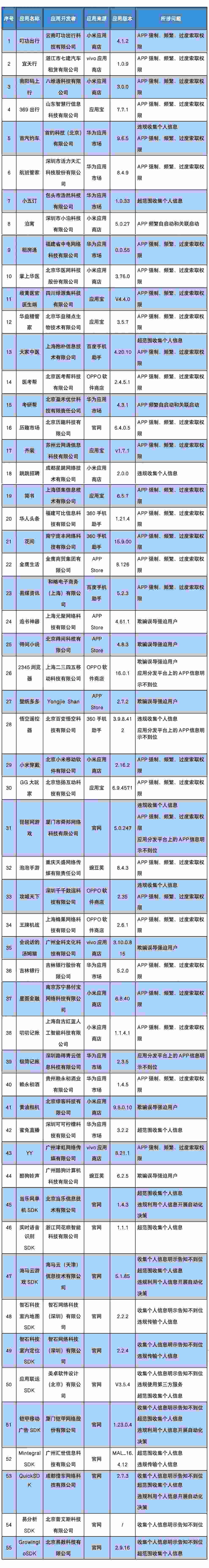 人民網(wǎng)北京3月21日電 (記者申佳平)據(jù)工業(yè)和信息化部官方微信公眾號“工信微報”消息,近期,工業(yè)和信息化部組織第三方檢測機(jī)構(gòu)對群眾關(guān)注的生活服務(wù)、休閑娛樂、實用工具等移動互聯(lián)網(wǎng)應(yīng)用程序(APP)及第三方軟件開發(fā)工具包(SDK)進(jìn)行檢查,發(fā)現(xiàn)55款A(yù)PP(SDK)存在侵害用戶權(quán)益行為。
