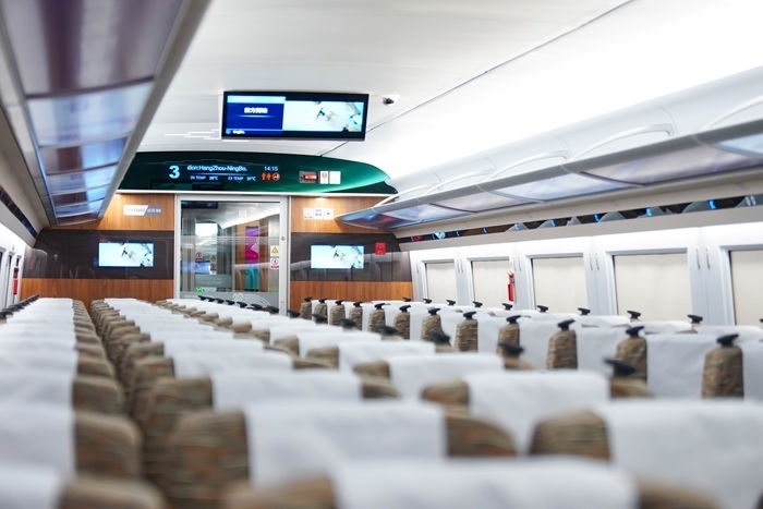 復(fù)興號亞運(yùn)智能動車組列車車廂。上海鐵路局融媒體中心供圖