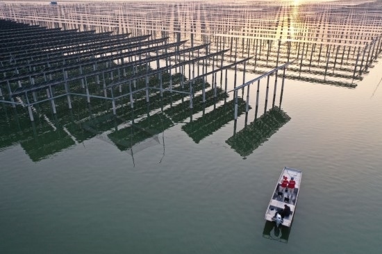 江蘇宿遷天崗湖,國網(wǎng)宿遷供電公司員工走進光伏基地檢查發(fā)電上網(wǎng)設(shè)備(2月15日攝)。新華社發(fā)(王松竹攝)