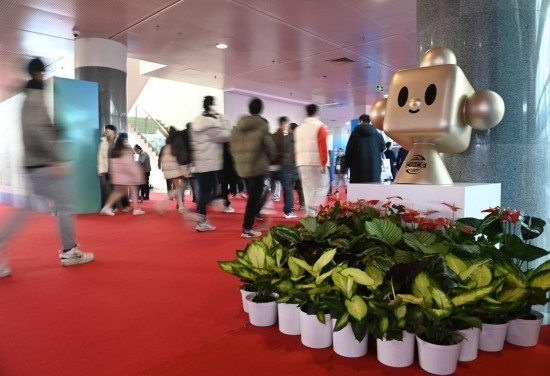 11月29日,鏈博會展廳入口處擺放著帶有“鏈氪”形象的小花壇引導(dǎo)觀展人群。
