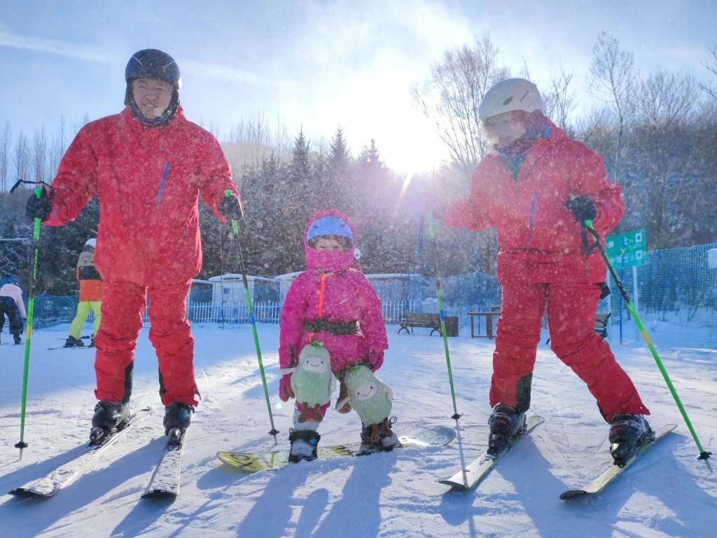 資料圖:小朋友和父母在長白山滑雪。新華社發(fā)