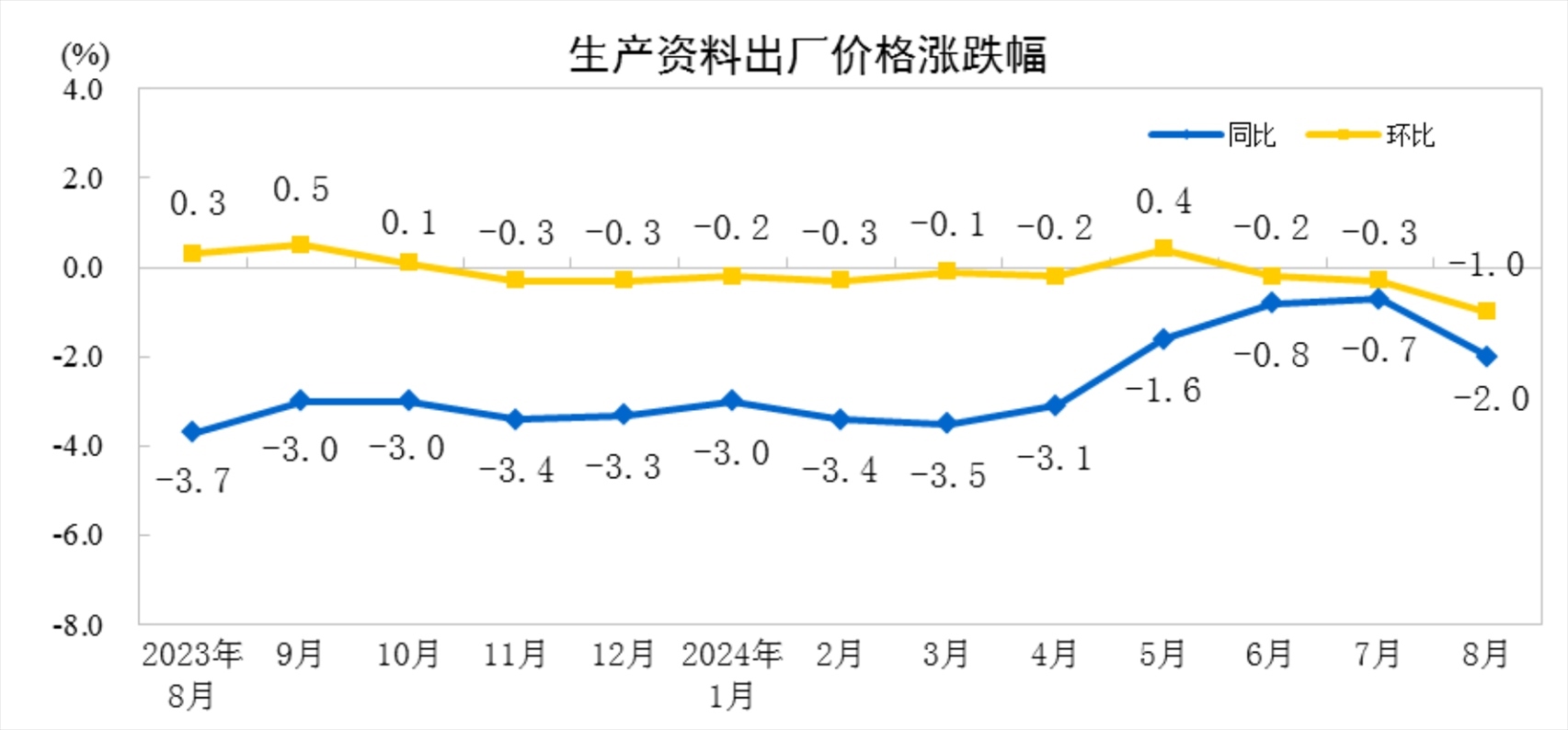 2024年8月工業(yè)生產者價格主要數(shù)據(jù)