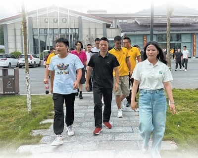 湖北省來鳳縣舊司鎮(zhèn),班主任(前排右一)帶領學員參觀全國鄉(xiāng)村治理示范村新街村。田 根攝(人民視覺)