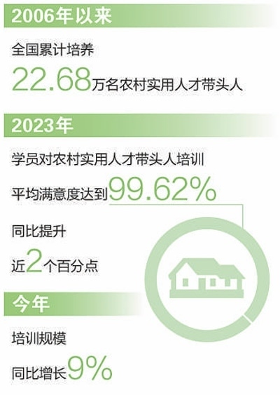 2006年以來,依托帶頭人培訓項目,全國已累計培養(yǎng)22.68萬名農(nóng)村實用人才帶頭人?!皫ь^人培訓以更新理念、開闊思路和增強能力為核心,旨在針對性提升學員各方面技能素質(zhì),進一步發(fā)揮好農(nóng)村實用人才帶頭人示范引領作用,強化鄉(xiāng)村全面振興人才支撐?!鞭r(nóng)業(yè)農(nóng)村部人事司有關負責人說。