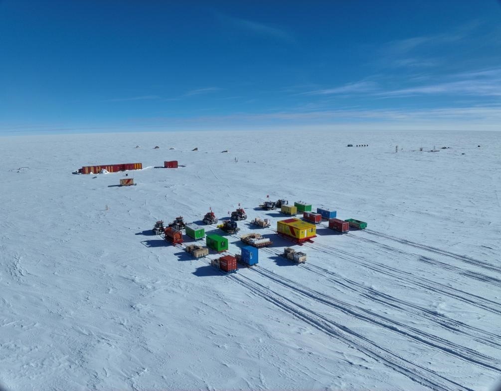 中國(guó)第41次南極考察隊(duì)的內(nèi)陸車隊(duì)抵達(dá)昆侖站。新華社發(fā)