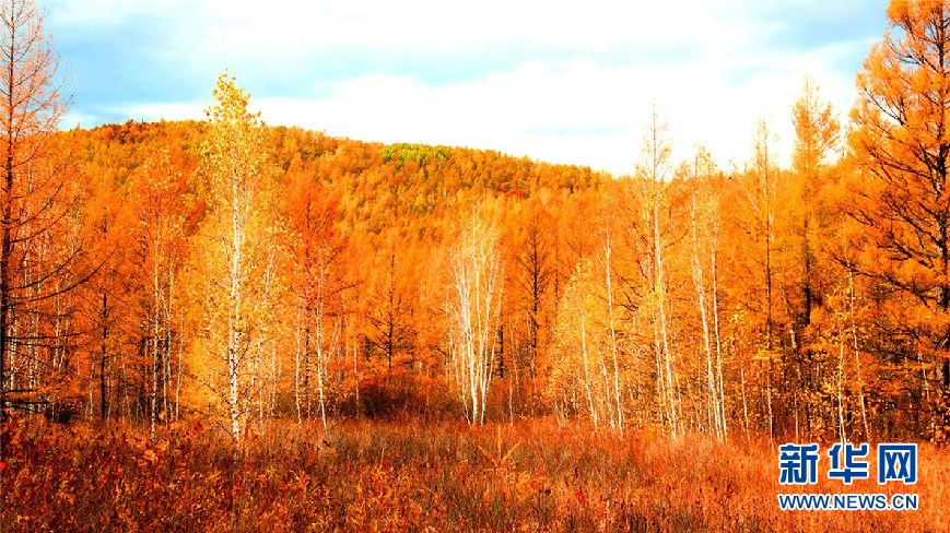 內蒙古大興安嶺阿里河國家森林公園內的樺林紅葉。(9月28日攝)新華網發(fā)(欒維敬 攝)