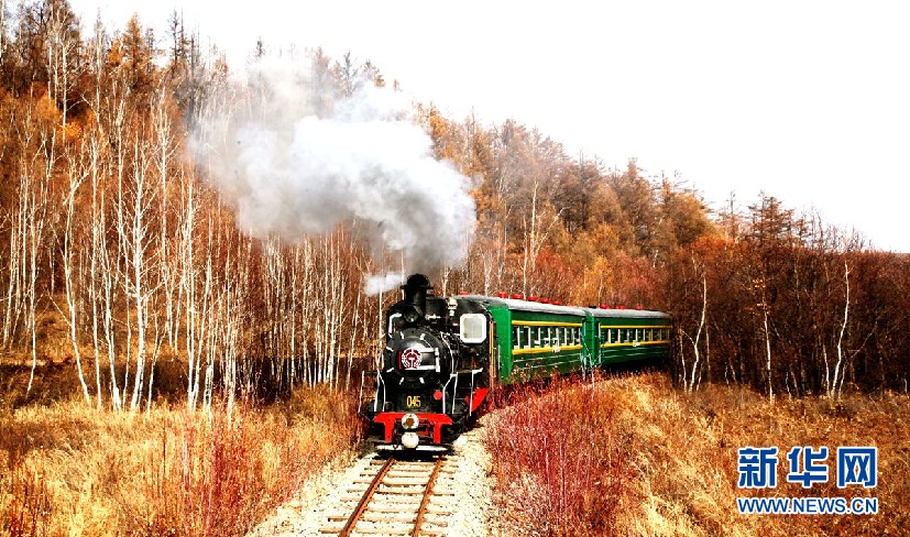 金秋時節(jié),在內蒙古大興安嶺阿里河國家森林公園內,森林蒸汽機小火車帶領游客穿越秋季美景。(9月28日攝)新華網發(fā)(欒維敬 攝)