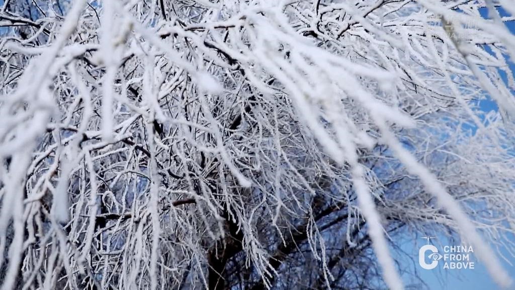 寒冬時節(jié),內(nèi)蒙古自治區(qū)鄂爾多斯市杭錦旗出現(xiàn)大面積的霧凇景觀,美不勝收。晶瑩剔透的冰晶掛滿樹梢,仿佛蒙上一層唯美的白紗。