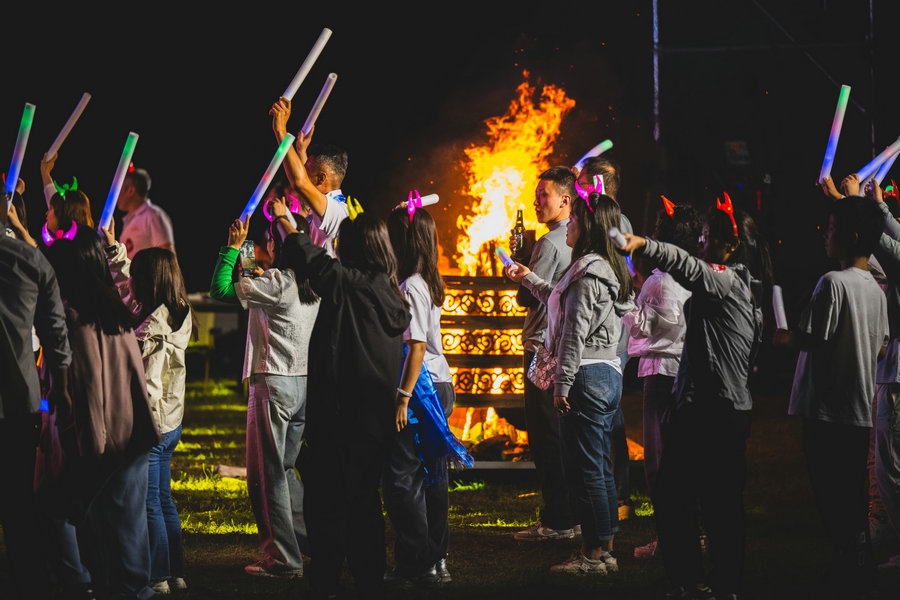 當(dāng)夜幕降臨,熊熊篝火點(diǎn)亮草原夜色,你也可以加入到狂歡的隊(duì)伍中,圍著篝火、拉起手,跳起歡快的安代舞,感受豐富多彩的文化娛樂活動(dòng),徜徉夜幕下草原歡樂的海洋。(林則志 攝影)
