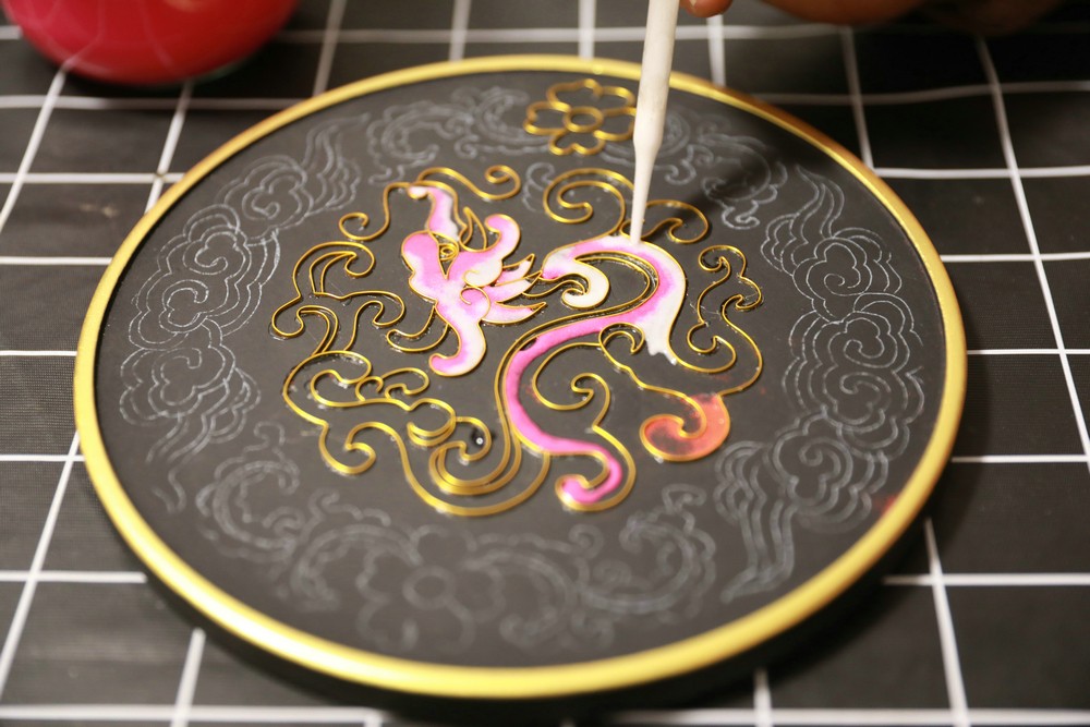 姬增正在制作景泰藍(lán)掐絲琺瑯畫