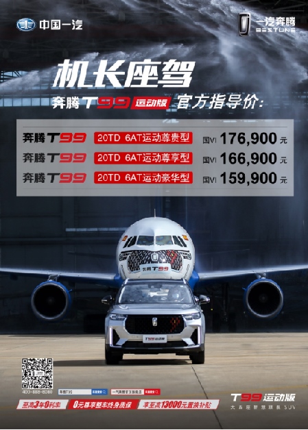 6月3日,奔騰T99 運動版空中發(fā)布會,于??谇巴戏实腏D99航班上舉行。