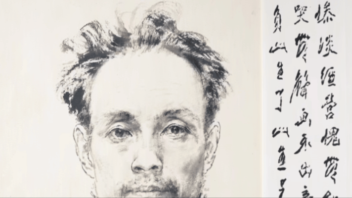 與病重時(shí)疲憊的狀態(tài)截然不同,王子武在畫(huà)作中刻畫(huà)自己的形象精神飽滿,飛揚(yáng)的發(fā)絲充滿朝氣。畫(huà)作《子武自寫(xiě)》中,人物眼神堅(jiān)定,造型簡(jiǎn)潔、穩(wěn)定,充滿力量感。整幅畫(huà)作表現(xiàn)了王子武將生命奉獻(xiàn)給繪畫(huà)的自信和決心。