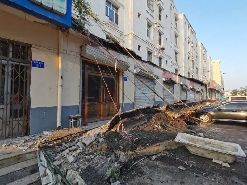 今日(9月10日)凌晨3點(diǎn)15分許,位于烏海正遠(yuǎn)家具南門對面的烏海生資小區(qū)外圍商鋪房檐突然坍塌,所幸沒有造成人員傷亡。