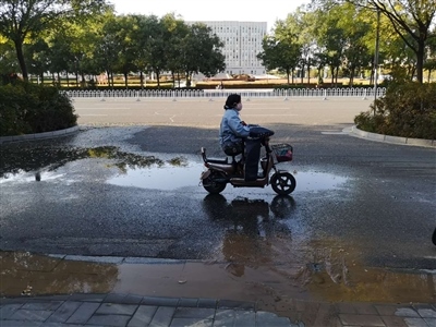 “我們已將閥門關(guān)閉,因這條管道不影響用戶用水,暫時不作處理?!?0月13日上午,黃河西部水業(yè)管網(wǎng)維護(hù)所所長董其偉接受記者采訪時說,跑水的是一根直徑100毫米的鑄鐵管,因為不影響河套公園用水,所以暫時將這根水管關(guān)了。(文/陶林 實習(xí)生 韓耀天 圖/通訊員 張偉)
