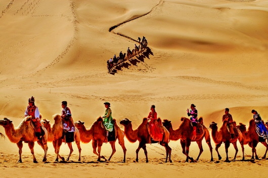 沙漠中的駝隊。(資料圖片)記者徐建攝