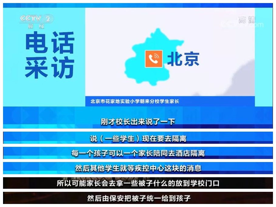 北京市花家地實(shí)驗(yàn)小學(xué)朝來(lái)分校 學(xué)生家長(zhǎng):現(xiàn)在應(yīng)該是做完核酸檢測(cè),在等結(jié)果了。老師在群里面會(huì)通知我們,孩子可能明天開(kāi)始線上上課。