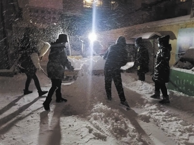 鐵路街道轄區(qū),12輛小鏟車、4輛大鏟車的發(fā)動機(jī)滾燙,全體街居干部、物業(yè)公司、保潔大隊,派出所和交警大隊等部門人員幾十人凍得手腳發(fā)麻也沒有放下手中的雪鏟,暴風(fēng)雪中,他們第一時間守在清雪保暢通的前沿陣地,“我們的目標(biāo)是‘雪停路凈’,一定要保障好群眾的安全出行。”