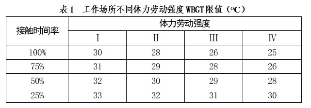 工作場所濕球黑球溫度(WBGT)指數(shù)職業(yè)接觸限值