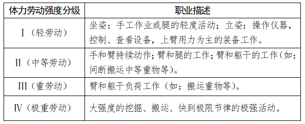 表2常見職業(yè)體力勞動強度分級表