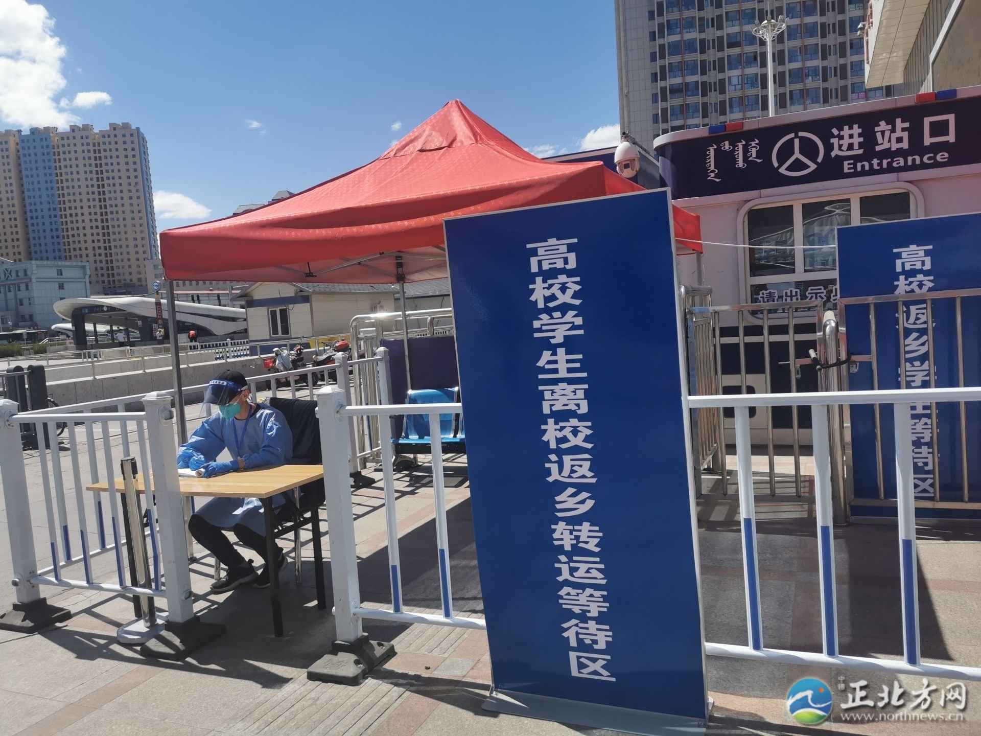 當(dāng)日,記者在呼和浩特火車站出站口看到,這里設(shè)置了“高校學(xué)生離校返鄉(xiāng)專用通道”的牌子,大學(xué)生下了火車可以按照牌子和工作人員的指示,走專用通道出站,車站門口還停著一輛掛著“高校返鄉(xiāng)學(xué)生轉(zhuǎn)運(yùn)車”牌子的面包車。