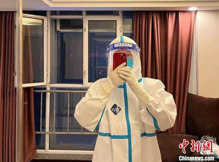 隔離期滿,郭佳煌選擇成為酒店防疫志愿者,工作時間是12點到24點?!爸虚g有4個小時休息,我不覺得辛苦,反而覺得很有意義,希望所有人都能夠團結(jié)起來,為抗擊疫情貢獻自己的力量?!惫鸦驼f。