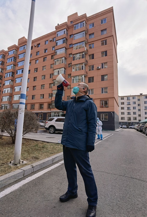 “看到群里招募志愿者,我就掃碼進群了,和大家一起自發(fā)管理小區(qū)?!眴虂嗛f,自己個子高又胖,防護服根本穿不進去,所以只能拿上喇叭,挨個樓棟挨個單元去喊,小區(qū)里15棟樓43個單元,他都要喊到,一上午要走10000多步,算下來也有五六公里了。